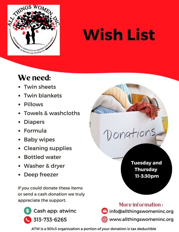 All Things Women, Inc provides services to men, women, Veterans and families in the State of Michigan. Our mission is to provide quality and comprehensive services to homeless Veterans and families.